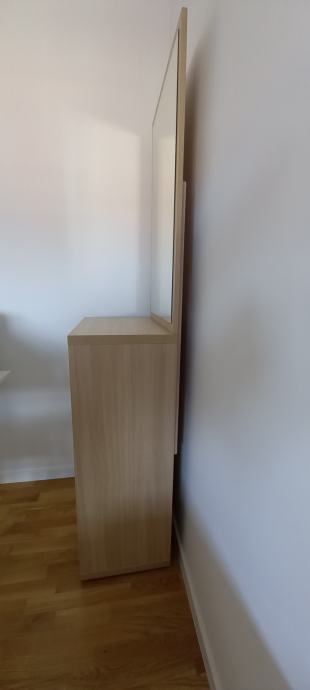 Ormar za predsoblje, kao novo, bez oštećenja!Korpus svijetli hrast, fronte-bijela boja visoki sjaj.ormar s ogledalom, 1 vrata, 1 ladica , donji element ima policu.(200x60x38). Dimenzije ogledala: v89x š 53.5 cm, , dimenzije dijela ispod ogledala: v105xš60 cm-dostupno odmah!