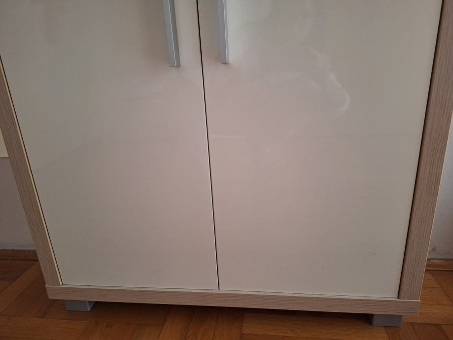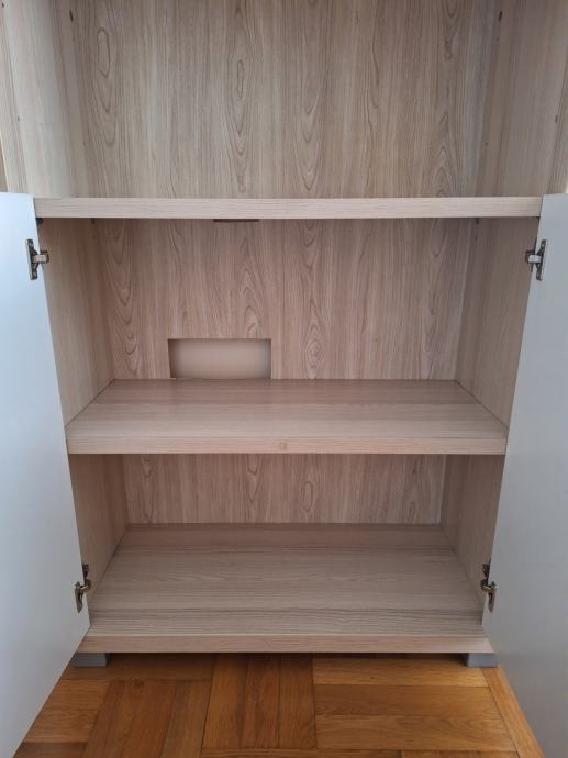 Kao nov, uščuvan, zadnja stranica (šperploča se da promijeniti). Dimenzije: dubina 35.5 cm, visina 115.5 cm, širina 80 cm.