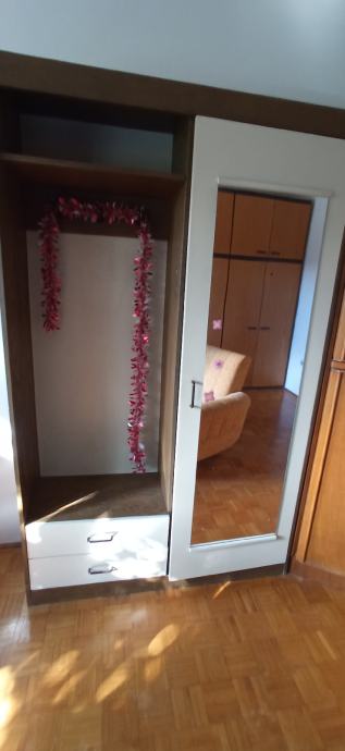 Očuvan i kvalitetan namještaj za predsoblje dva elementa, slovenski proizvod, širine 123+58 cm, visina 198cm, sa velikim ogledalom na vratima