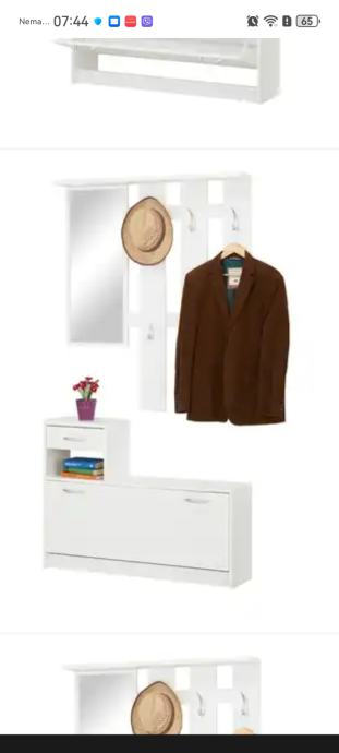 Novi Set za predsoblje bijele boje, sastoji se od ogledala, vjesalica i ormarica za cipele.