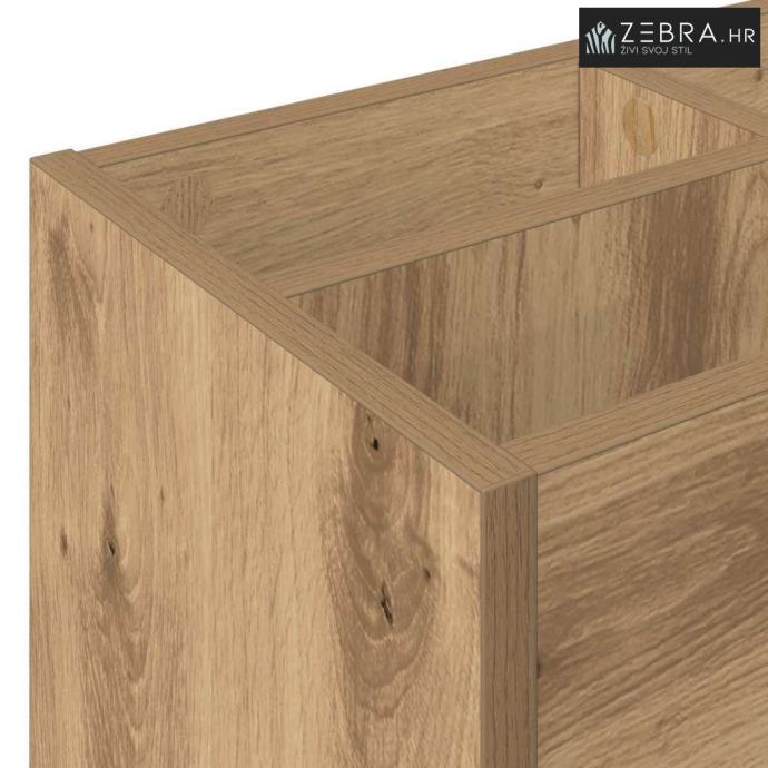 Elegantno inženjersko drvo: Izrađen od inženjerskog drveta, ovaj stalak nudi stabilnu i čvrstu strukturu s finim završetkom koja se uklapa u svaki moderni interijer. Izdržljiv materijal osigurava da lako podnese svakodnevnu upotrebu dok zadržava elegantan izgled.