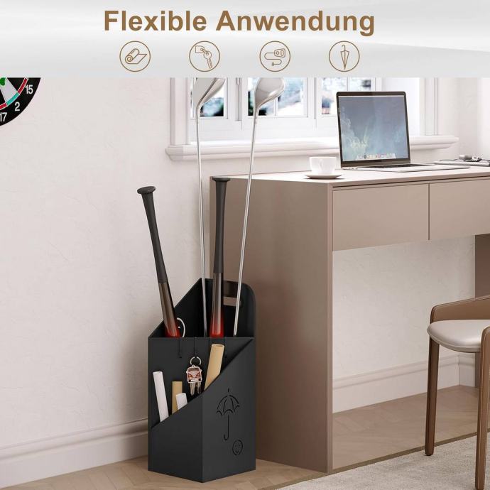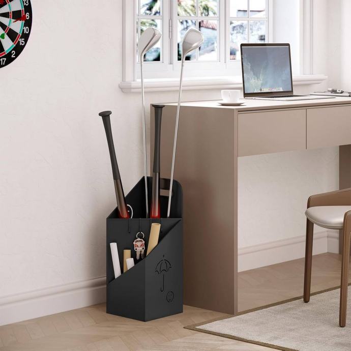 Ovaj stalak za kišobrane s praktičnim dizajnom nudi 2 pregrade – višu za štapne kišobrane i nižu za sklopive kišobrane, omogućujući pohranu kišobrana različitih veličina. Stalak olakšava jednostavno stavljanje i vađenje kišobrana te je praktičan pomoćnik u svakodnevnoj uporabi.