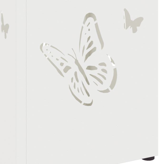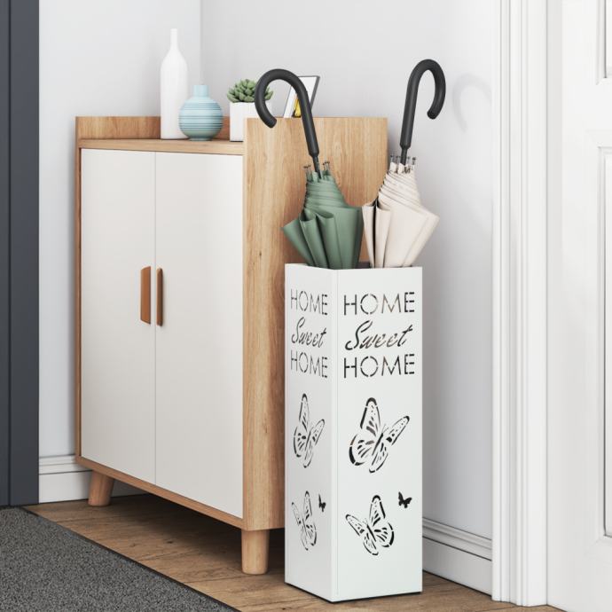 Ovaj stalak za kišobrane je cool dodatak svakom hodniku. Njegova šarmantna bijela završna obrada izgleda super, ali i služi praktičnom cilju. Dizajniran je da drži kišobrane raznih veličina, pomažući ti da ulaz izgleda čisto i sredjeno, dok uzorci leptira stvaraju toplu i ugodnu atmosferu.