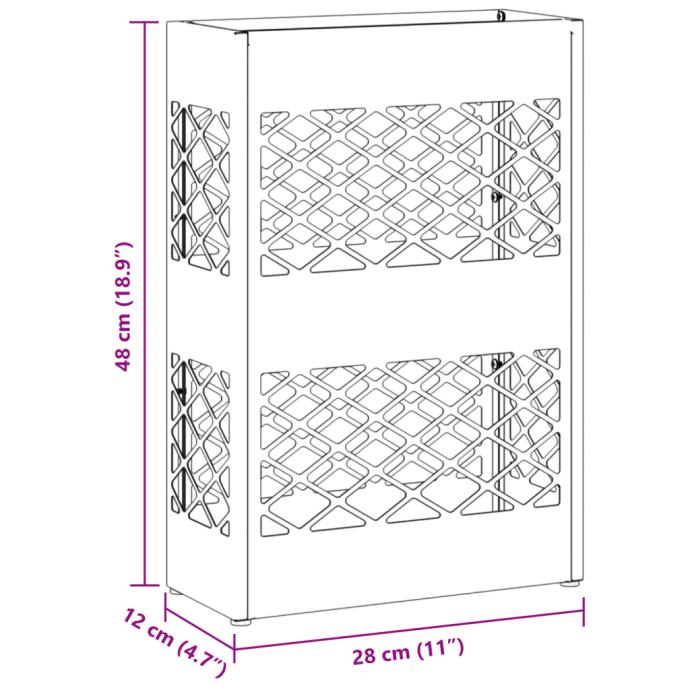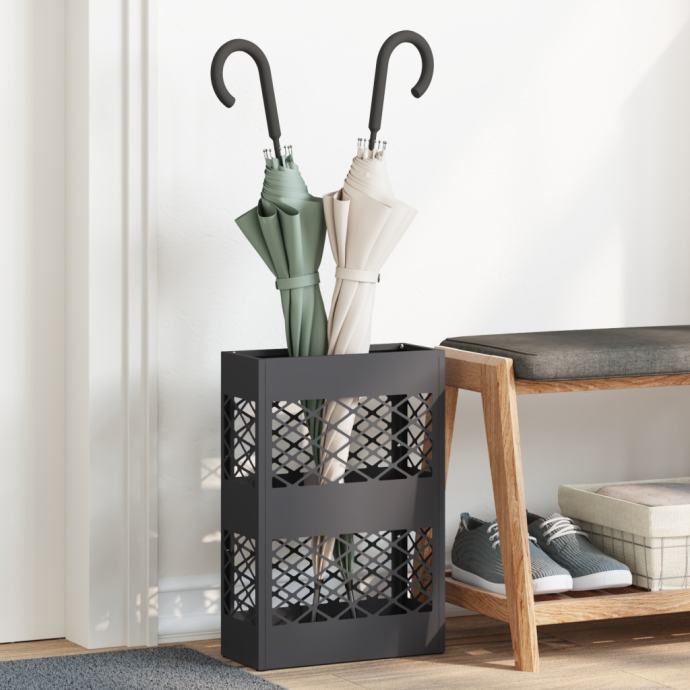 Ovaj moderni stalak za kišobrane super je spoj funkcije i stila za tvoje predsoblje. Uređuje mokre kišobrane bez nereda. Sa svojim pravokutnim oblikom i crnom metalnom obradom, lako se uklapa u razne stilove dok pomaže da se i drugi predmeti čuvaju.