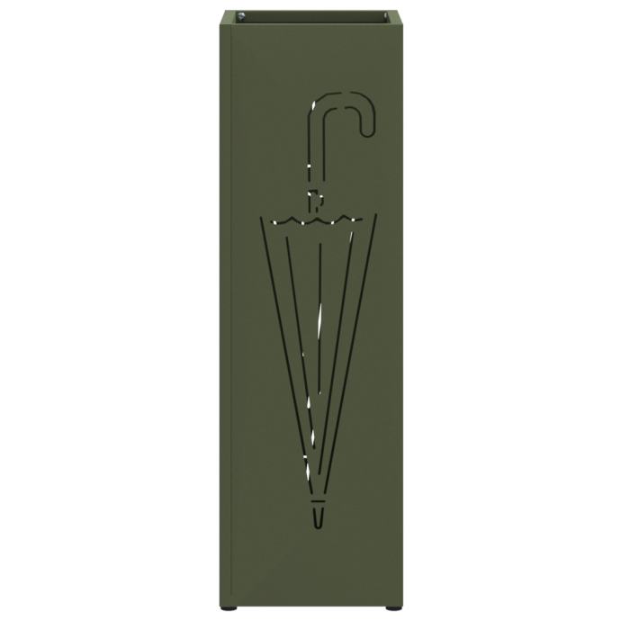 Ovaj stalak za kišobrane je klasik za svaki hodnik, s prekrasnim maslinastim završetkom koji dodaje stil dok je super praktičan. Dizajniran je da drži sve veličine kišobrana u elegantnom pravokutnom obliku, pomažući da vaša ulazna prostorija bude čista i moderna. Njegovi jedinstveni geometrijski naglasci čine ga privlačnim.
