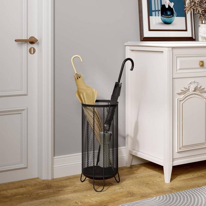 Minimalistički dizajn s perforiranom metalnom mrežom jednostavan je i elegantan, pruža praktično mjesto za kišobrane, a ujedno je i diskretan dekorativni element koji se uklapa u različite interijere.