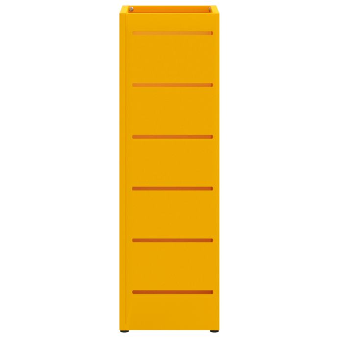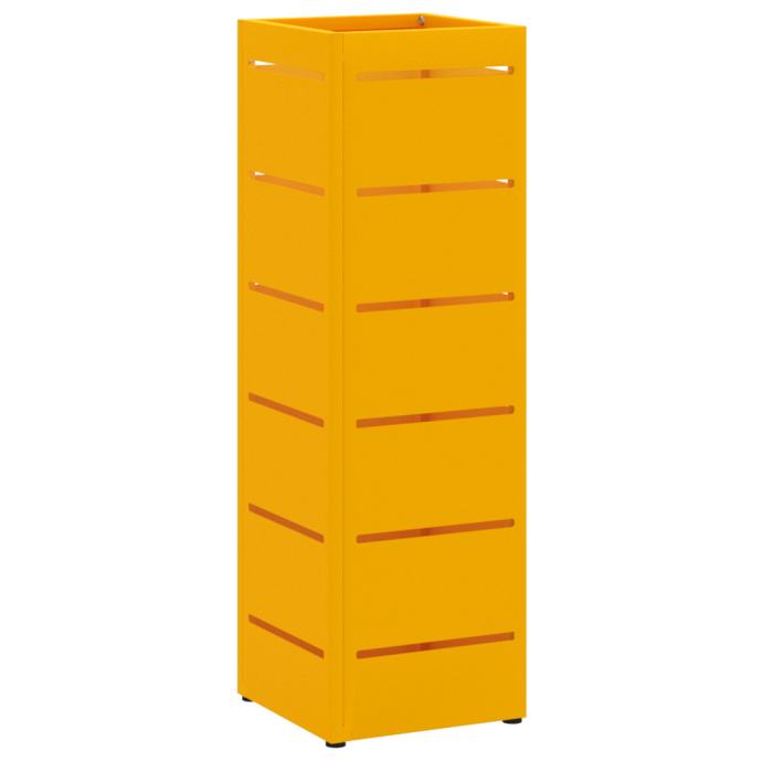 Ovaj stalak za kišobrane odlično izgleda u svakom hodniku, s jarkim senf žutim završetkom koji privlači pažnju i služi praktičnoj svrsi. Osmišljen je da elegantno drži kišobrane svih veličina, čuvajući tvoj ulaz čistim i modernim, stvarajući dobar dojam.