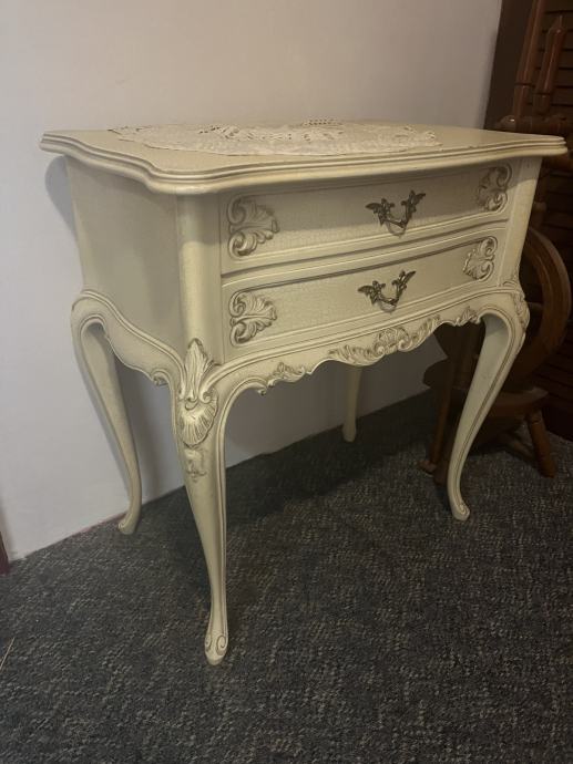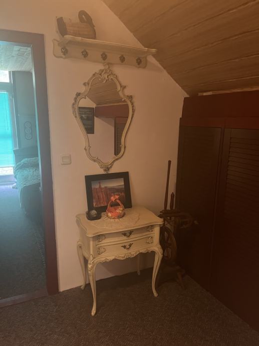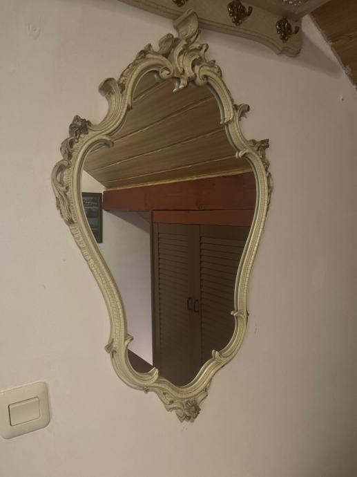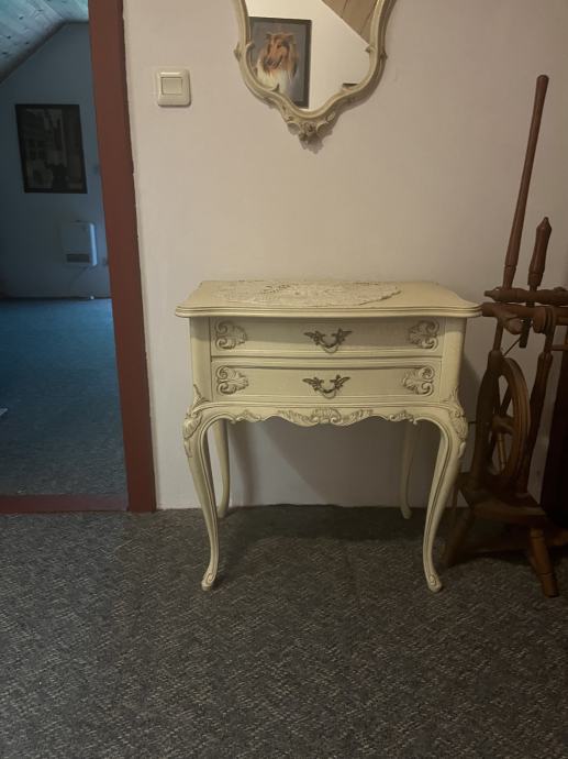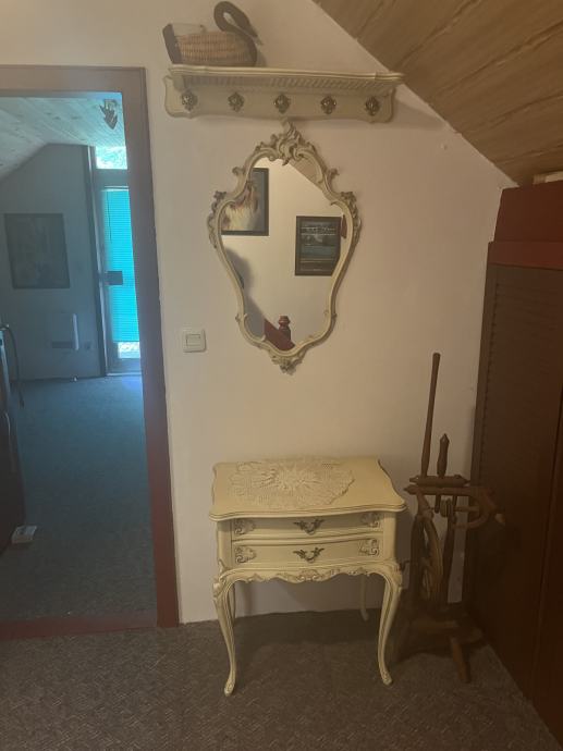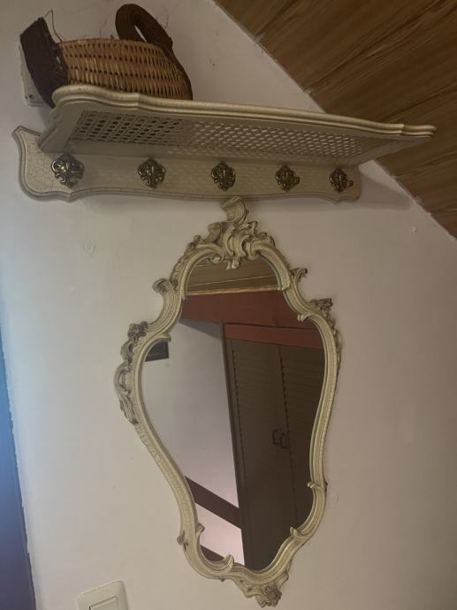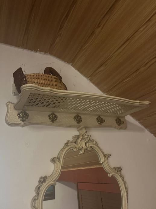 *Vintage, decoupage komplet* stolić, ogledalo i zidna polica s vješalicama za predsoblje ili sobu.