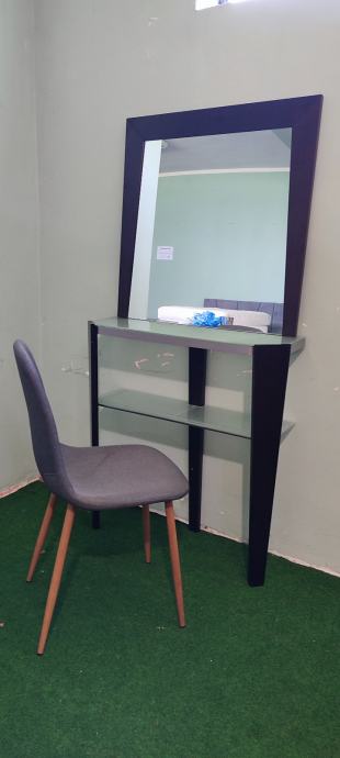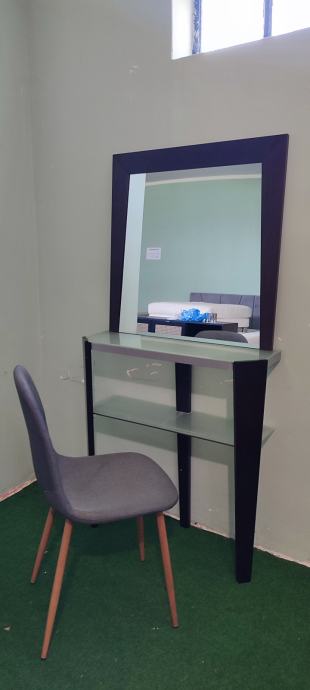 Toaletni stolić s ogledalom i stolicom.
