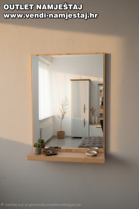 Zidno ogledalo sa policom, hrast – NOVO
