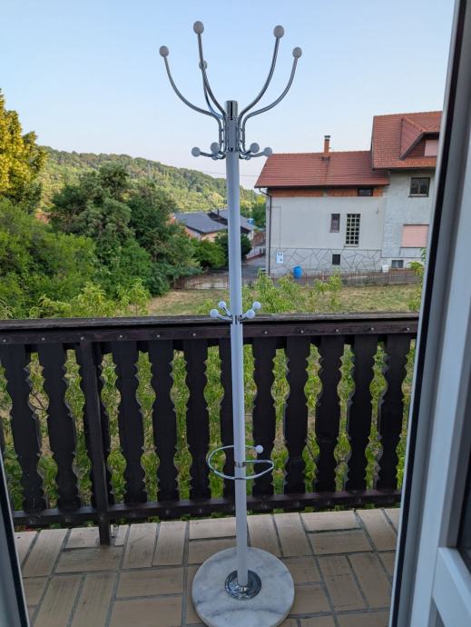 Baza je mramor (37cm), vješalica je stabilna sa puno mjesta za vješanje odjeće, ima i stalak za kišobrane.