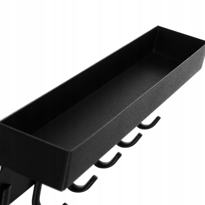 Polica je izrađena od visokokvalitetnog metala s crnim mat premazom koji pruža moderan i minimalistički izgled pogodan za bilo koji ambijent. Zahvaljujući jakom magnetu, jednostavno ga pričvrstite na metalne površine poput metalnih vrata, hladnjaka ili drugih metalnih ploča, bez potrebe za dodatnim vijcima ili ljepila.