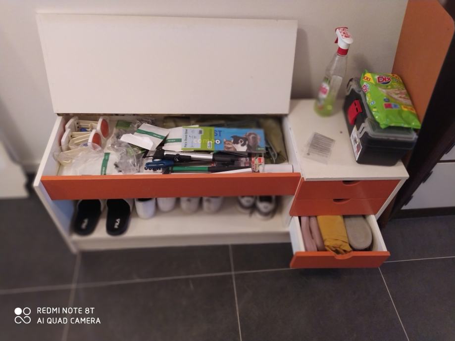 Retro namještaj za pedsoblje iz sedamdesetih. Kvalitetno. Stanje kao na fotografiji. Ogledalo i vješalice treba montirati.