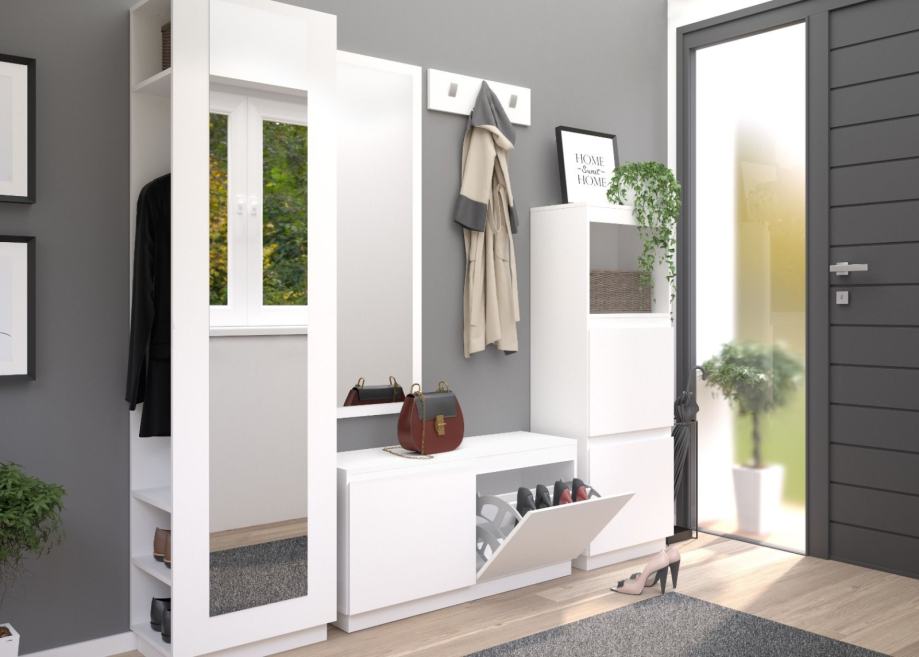 Prodajem predsoblje vješalicu sa ogledalom i otvorenim ormarićem za cipele. Proizvod je bijele boje.