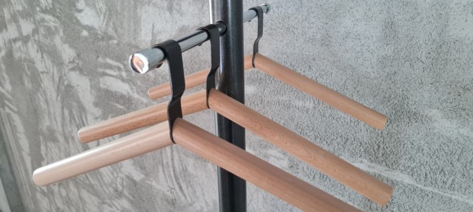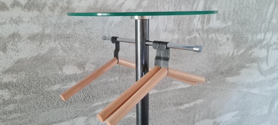 Samostojeća vješalica marke Bene. Metalna, stabilna sa teškim postoljem. Malo korištena bez oštećenja.