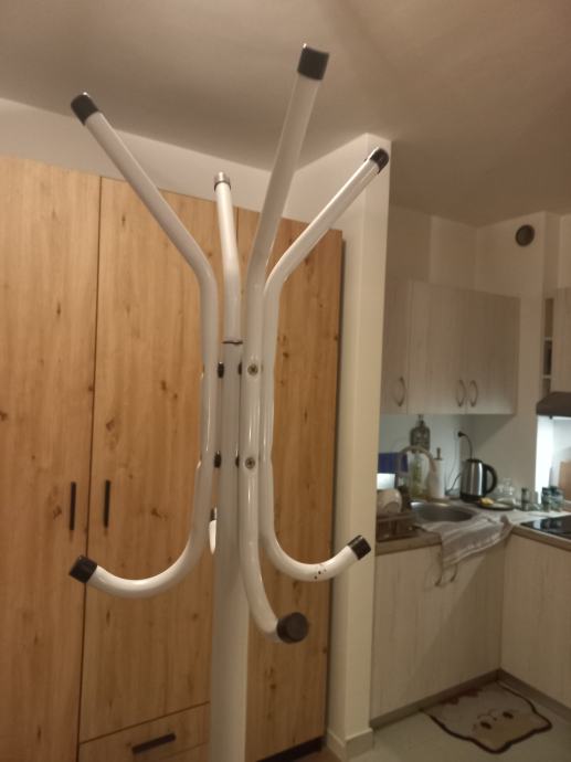 Samostojeća, nova, bijela vješalica. Visina 175, 2 razine po 4 držača. Dostava po dogovru i mogućnostima.