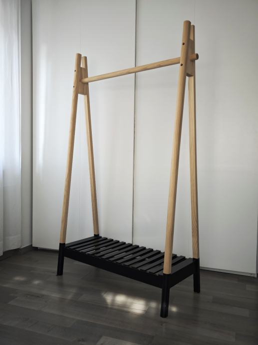 Prodajem novi stalak za robu sa gornjom šipkom za vješanje te doljnim djelom za odlaganje obuće ili ostalih stvari. Stalak je nov, kupljen u Jysku za 75 eura. Stalak je izuzetno kvalitetno izradjen i čvrst te ujedno izgleda veoma dekorativno. Može se doći pogledati uz telefonsku najavu na 0996726752. Zagreb Zapad.