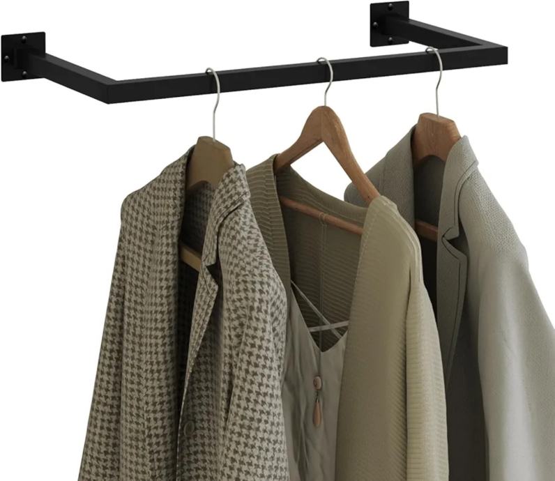 Pravokutna vješalica za odjeću, zidna, industrijska, cijevna, ušteda prostora za hodnik, kuhinju, dnevni boravak, kupaonicu, nosivost 50 kg, 64 x 6,5 x 30 cm, crna