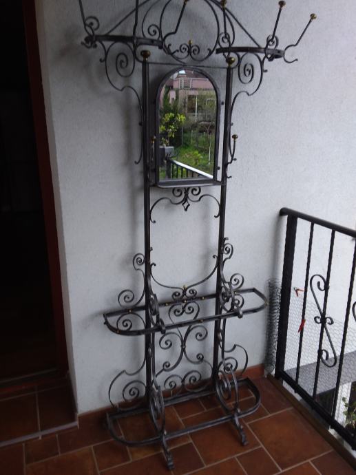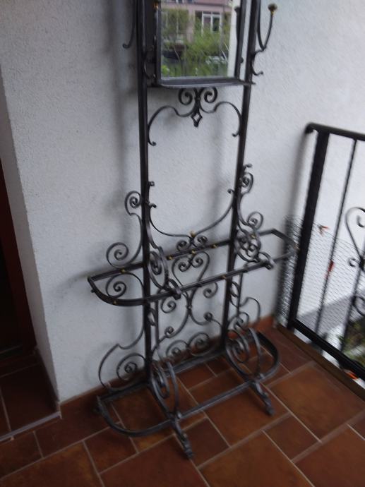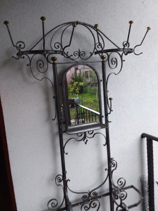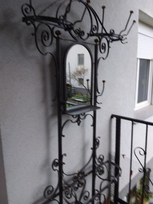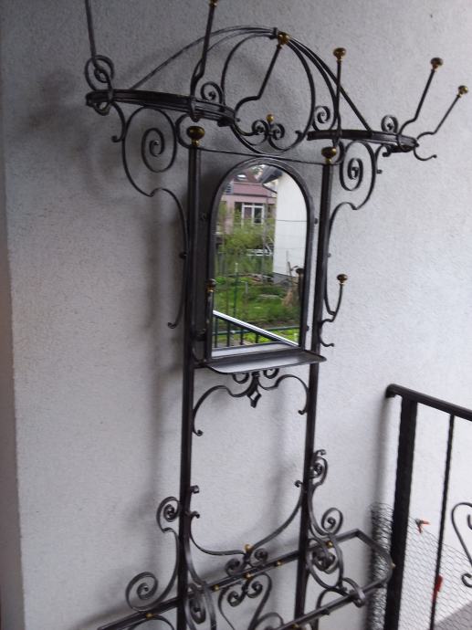 Retro, kovana vješalica, samostojeća sa ogledalom, rućni rad, u dobrom stanju, očuvana i stabilna.