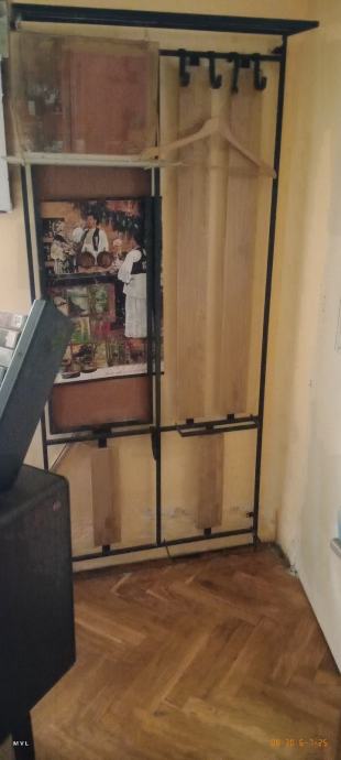 Vješalica je kombinacija drveta i metala. Visina 186 cm. širina 81 cm.