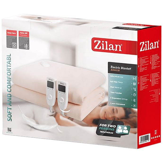 Električna deka, stalna i ravnomjerno raspoređena temperatura, kratko zagrijavanje, mekani materijal, 5 postavki temperature, funkcija timer 1 - 10 h, osigurač struje i temperature, zaštita od pregrijavanja, odvojivi priključak + VDE utikač, perivo, snaga 2 x 60 W, dimenzije 160 x 140, dupla širina (za dvje osobe).