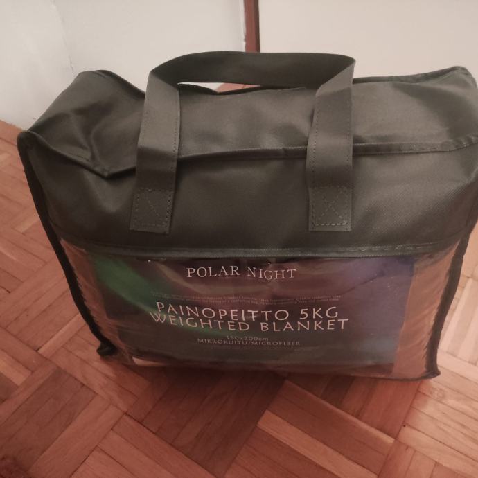 Pokrivač je od mikrofibre i u sebi sadrži kuglice (uteg) od 5 kg. 150x200 cm.