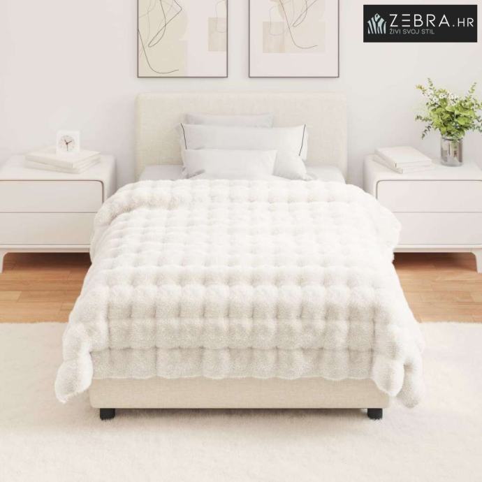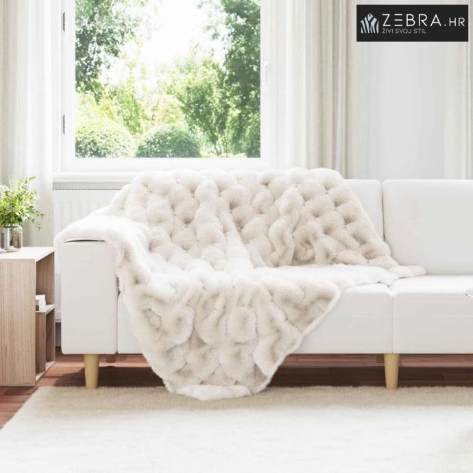 Plišasta mjehurićasta tekstura Stvara ugodan dodir, savršena za maženje tijekom hladnih večeri. Dodaje karakter i dubinu deki. S umjetnim krznom, donosi luksuznu toplinu svakoj sobi.