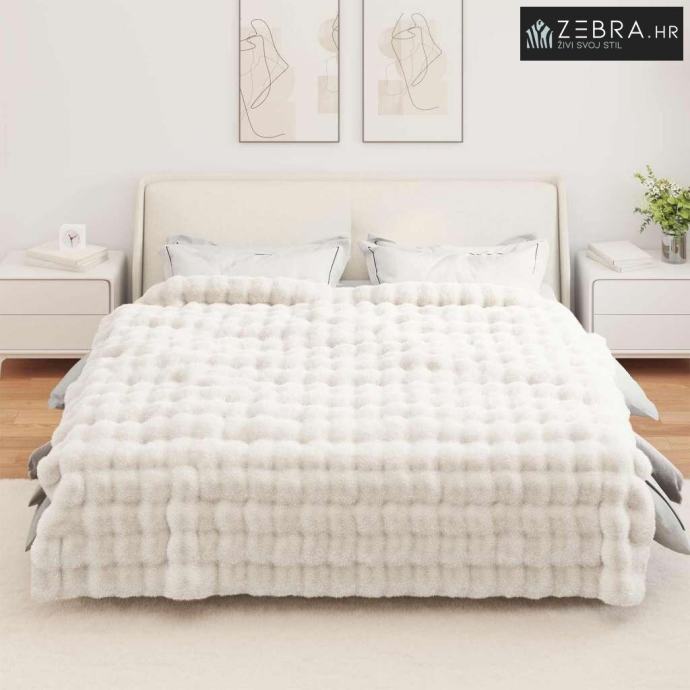 Plišasta mjehurićasta tekstura Stvara ugodan dodir, savršena za maženje tijekom hladnih večeri. Dodaje karakter i dubinu deki. S umjetnim krznom, donosi luksuznu toplinu svakoj sobi.