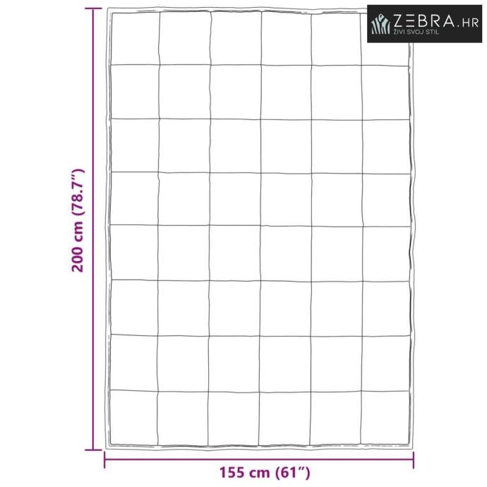Ovaj ljetni pokrivač pretvara vašu spavaću sobu u ugodno mjesto s modernim stilom i luksuznim dodirom. Kviltani dizajn dodaje vizualni šarm i osigurava ravnomjernu raspodjelu topline, pa je idealan za one koji traže odličnu kombinaciju udobnosti i elegancije. Obavijte se njegovim mekim dodirom i prozračnim materijalom, koji poboljšava kvalitetu sna.