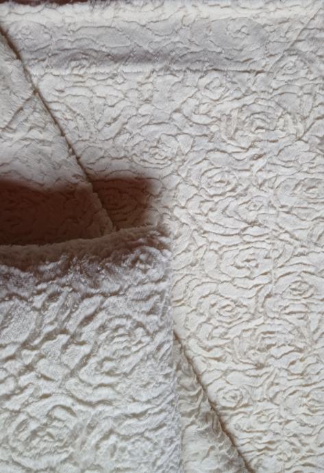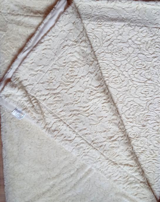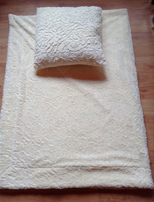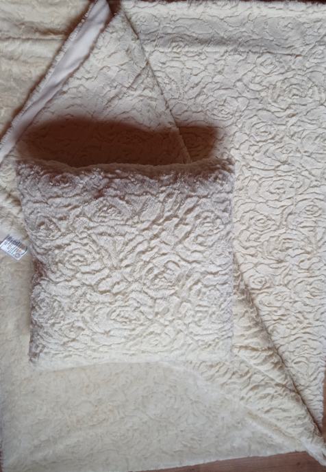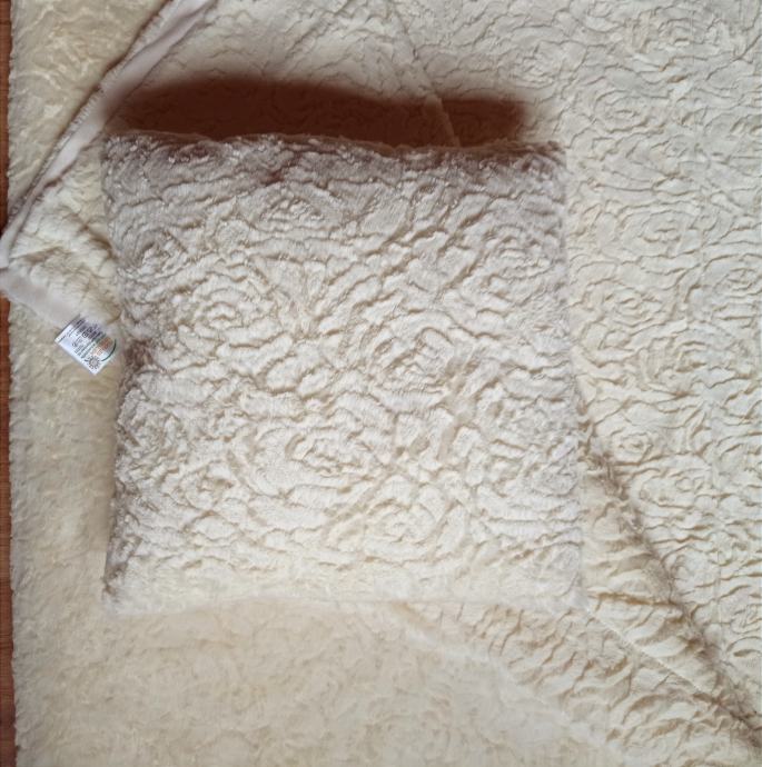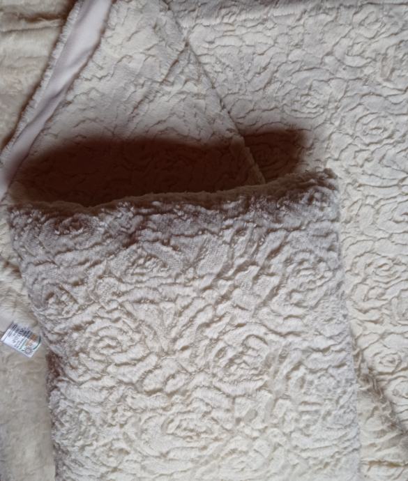 Prodajem novi mekani prekrivač s jastukom.Prekrivač i jastuk imaju dva lica,na jednoj strani su stlizirani cvjetovi.Može se prati na 40 stupnjeva i ne elektrizira se.Dimenzije prekrivača su 253 x 173 cm,a jastuka 45x45 cm.