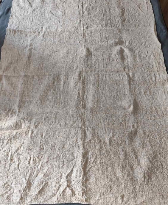 Ponjava od domaćeg starinskog platna. Ručno tkano. Dimenzije 118 cm x 165 cm. 30,00 eura.