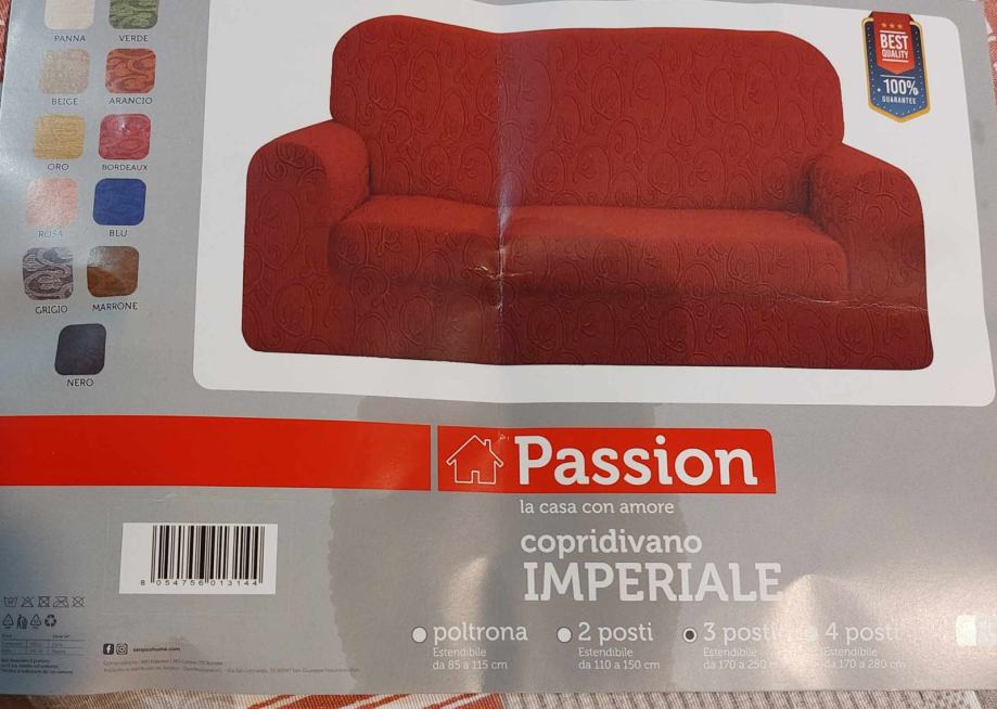 Periva u perilici na 30stupnjeva. Navlaka je rastezljiva u širinu za trosjed od 1.70 do 2.50 m mjereno s vanjske strane od jednog naslona za ruke do drugog naslona za ruke.