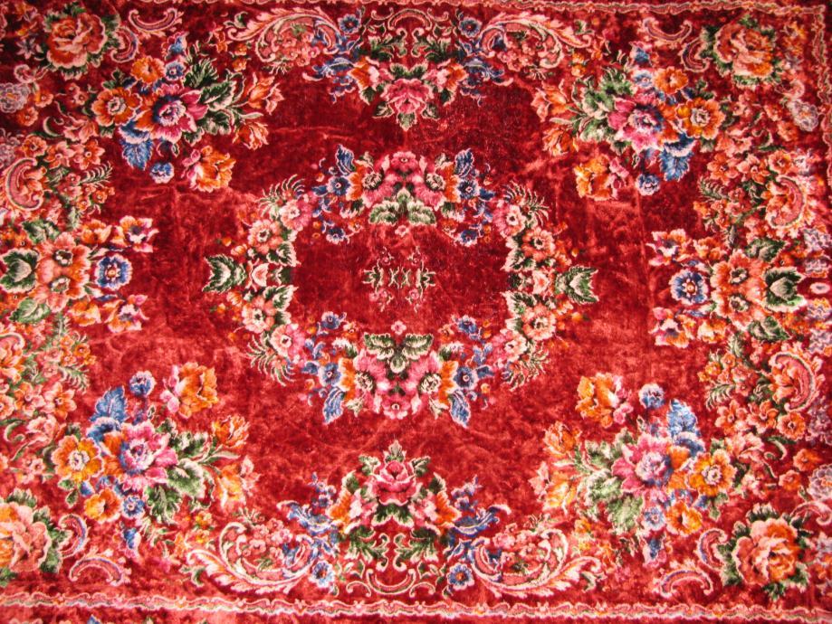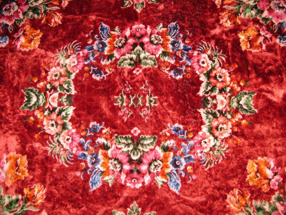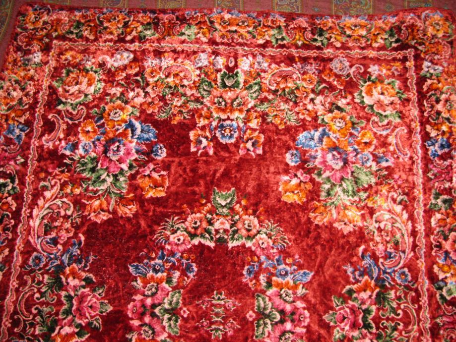 Izrađen od pliša - velura, deblji materijal, kao stari zidnjaci. Kupljen davno u Italiji, ali nije korišten, Trošak poštarine plaća kupac.