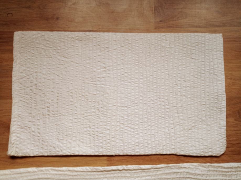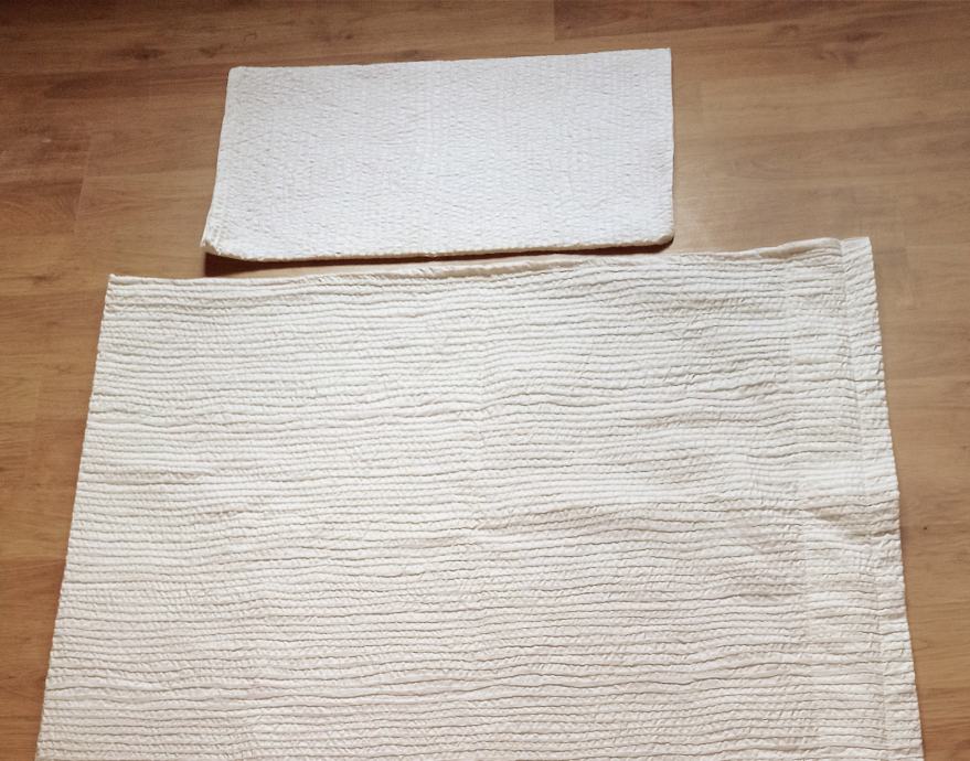 Novi prekrivač,duljine 180x143,s jastučnicom dimenzija 57x33 cm.