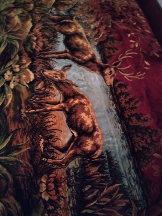 Prekrivač za krevet ili prostirka, dužina 180 cm, širina 125 cm, ušćuvano, 30 eura.
