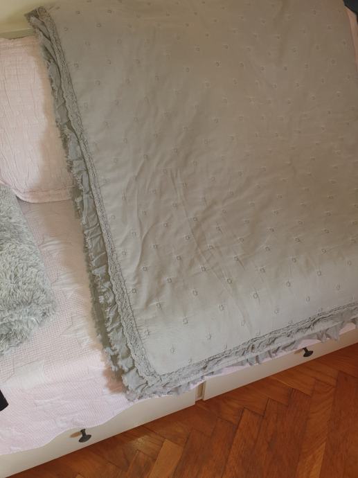 Prekrivač za krevet sivi sa čipka rubom