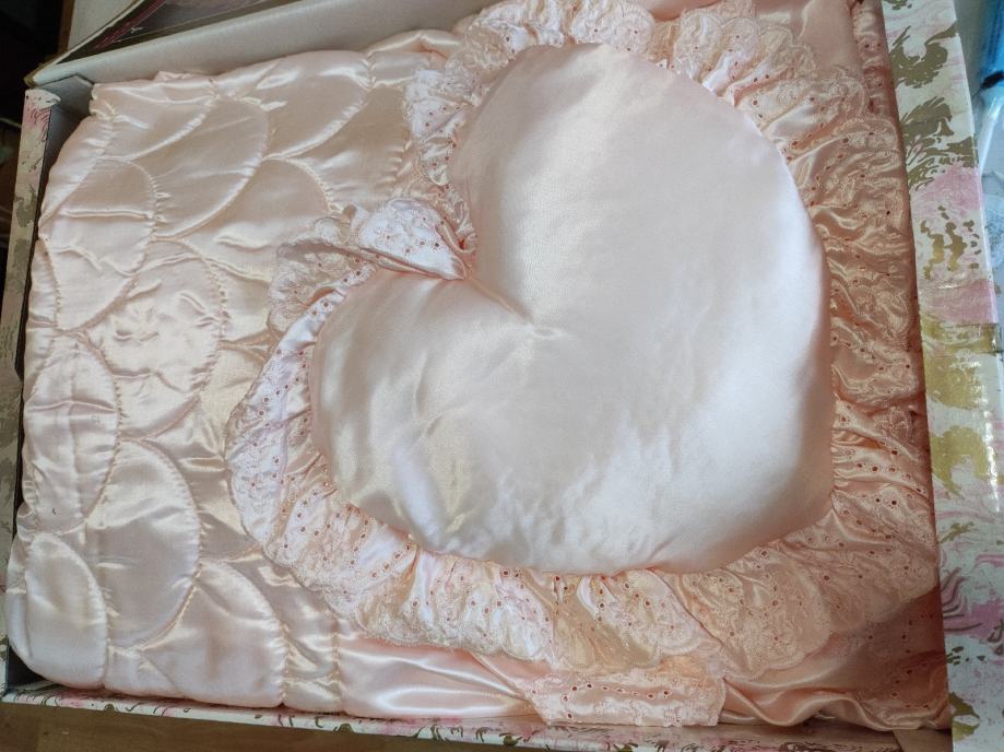 Novi prekrivač za bračni krevet, jastučnice 2x, i jastučić srce. Preuzimanje u Rijeci. Cijena 53€