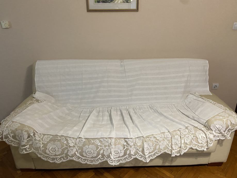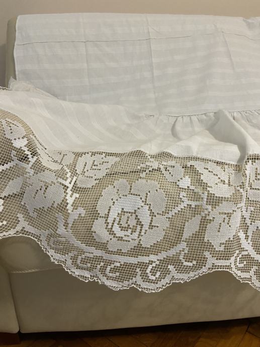 Slavonski prekrivač ~ domaće tkano platno ~ necana čipka ~ 2 komada