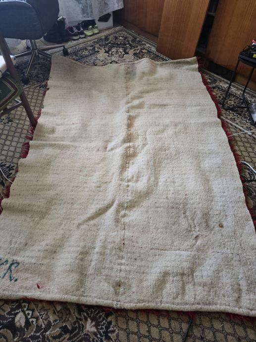 Prodajem biljac kojeg je ručno izradila moja baka , njezini inicijali se nalaze na bijelom dijelu uz donji rub. 220x140cm.Nije baš u najboljem stanju upravo zbog zuba vremena. Ima oštećenja, sve što želite ću vam slikati. Zbog toga je cijena za ovaj komad takva. Prvi kontakt preko Njuškalo poruka, molim. Zbog težine najbolje osobno preuzimanje.