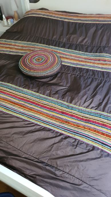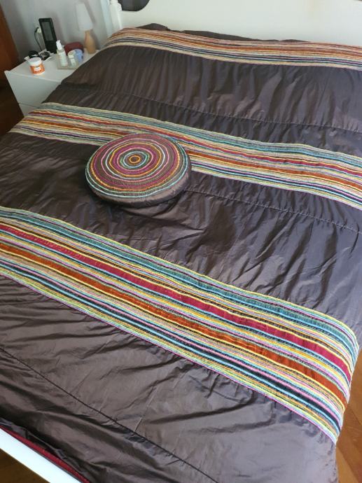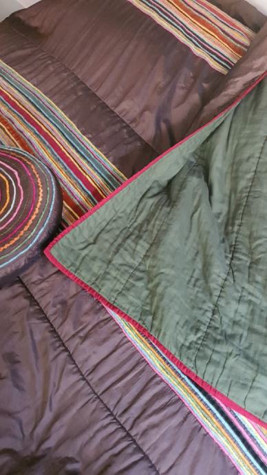 Prodajem ukrasni prekrivač, Meblo, Motivi, made in Indija. Uz prekrivač, kupac dobiva i dva ukrasna jastučića u istom dezenu. Dimenzije: 235×243 cm.