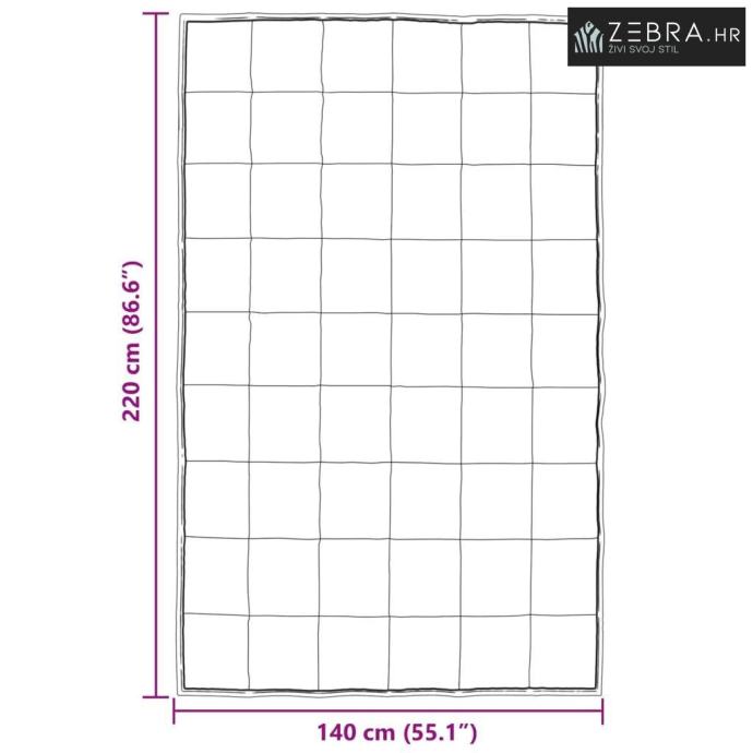 Ovaj moderni zimski pokrivač obavija vas u toplinu i mekoću, savršen je dodatak svakoj spavaćoj sobi. Kontemporarni dizajn pruža kvadratnu teksturu i čiste linije, reflektirajući jednostavnost i eleganciju. Idealan za hladne zimske noći ili za dodatnu udobnost tokom cijele godine, osigurava miran i spokojan san. Prilagođen je samo za unutarnju upotrebu, dok njegov sofisticirani izgled poboljšava razne stilove dekora, doprinoseći atmosferi vašeg prostora.