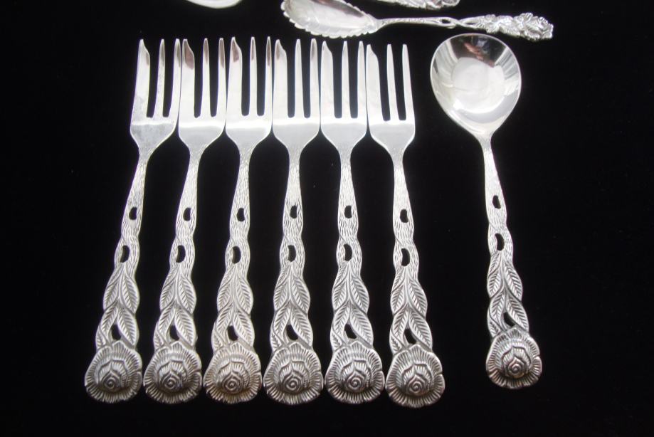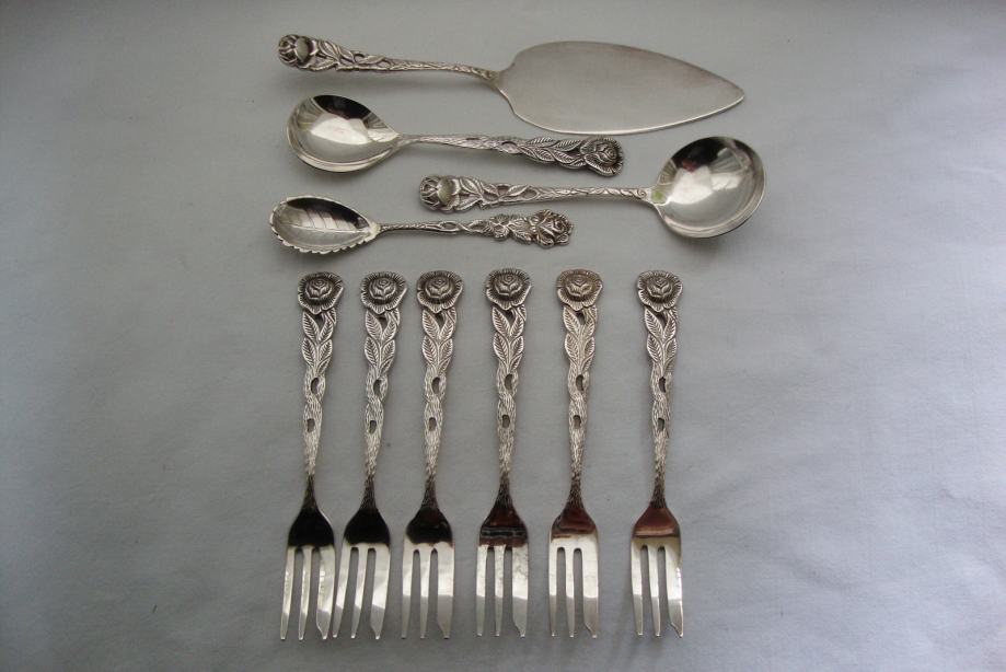DESERTNI PRIBOR - RUŽE- 6+1 =7kom Posrebreni vintage pribor