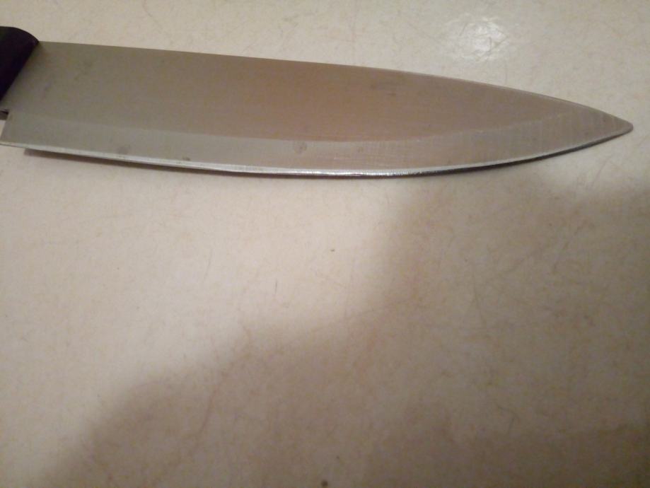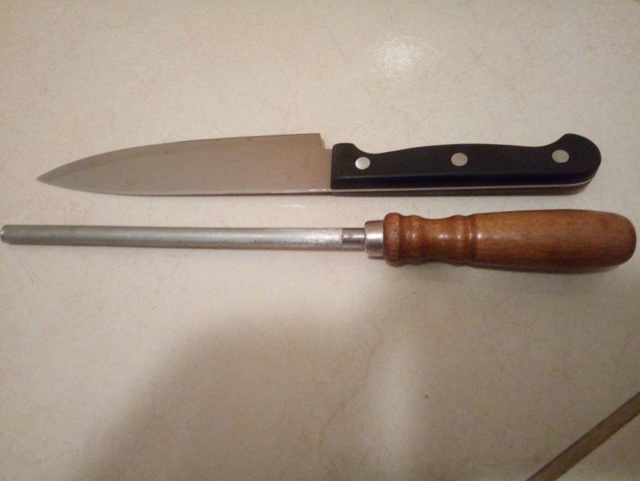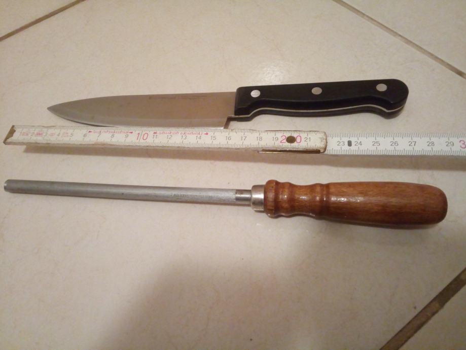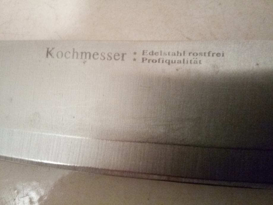 Stari profesionalni kovani nož za kuhare,dvostruko klepan (u dva nivoa.Obratite pažnju na oštricu).