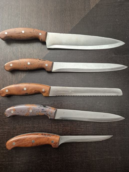 Dobro očuvani kvalitetni noževi; stalak gratis