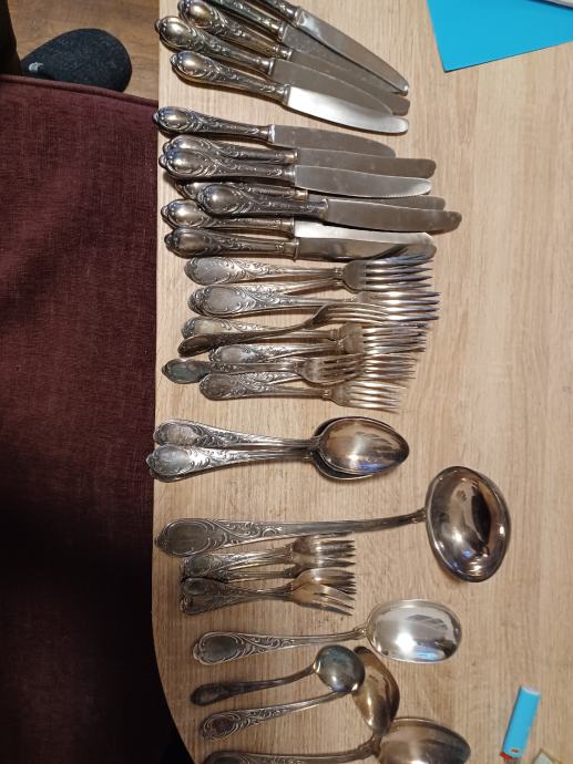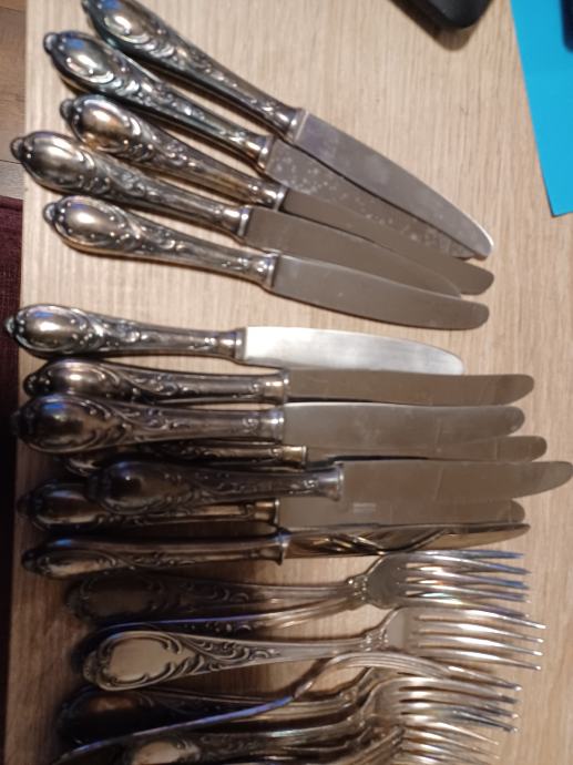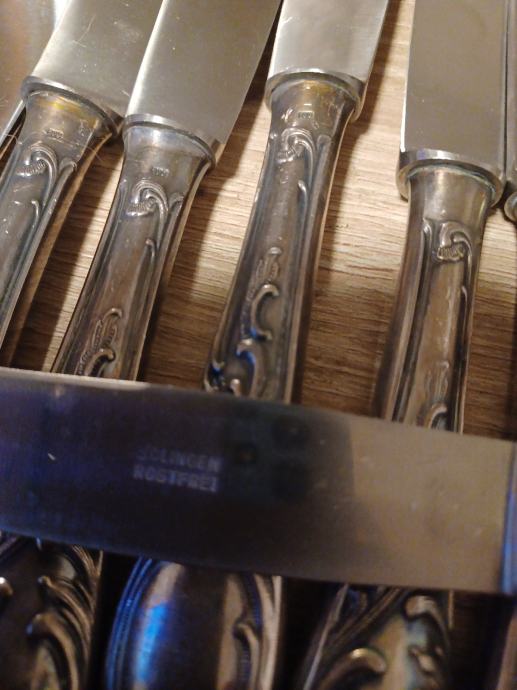 Neupotrebljavano posrebreno rad 1960 god.Oštrice rostfrei Solingen.50 komada u kompletu