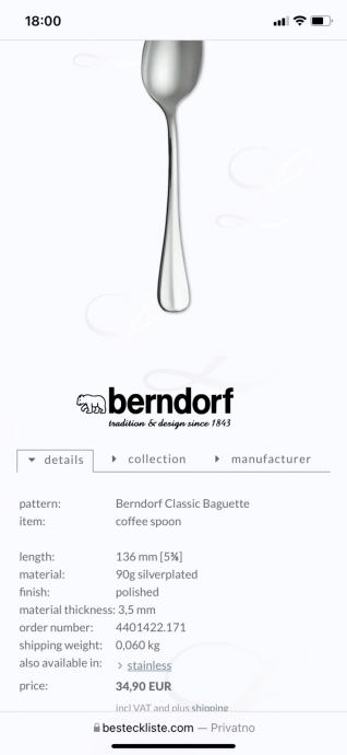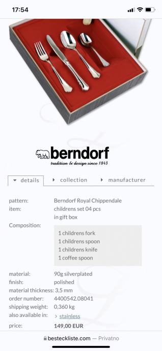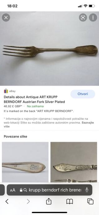 Sječivo noža je berndorf rostfrei, ručka je srebro