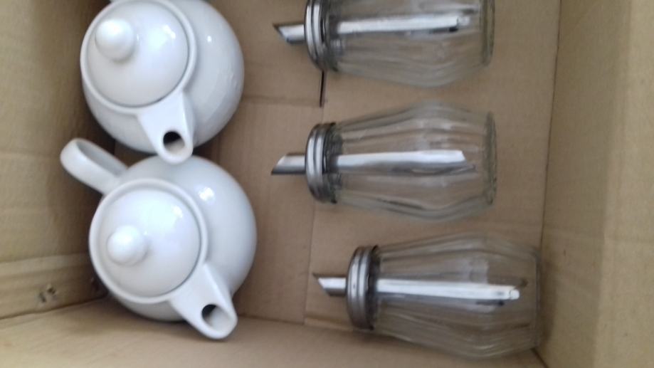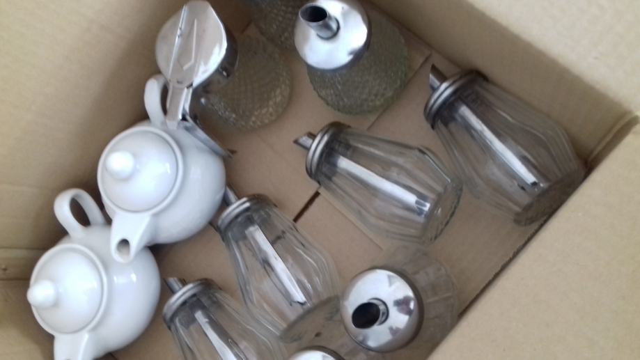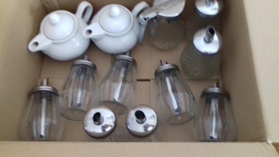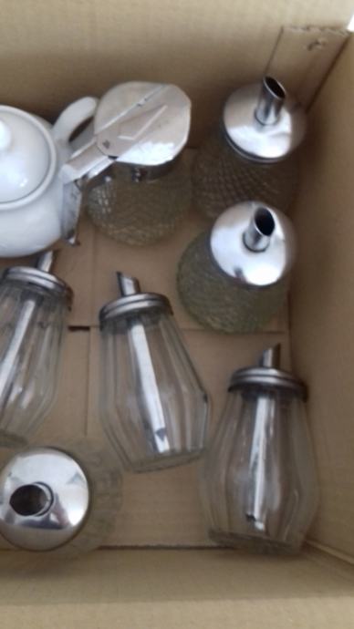 Prekrasnih 8 doza za šećer staklenih sa metalnim poklopcem. Cca 20dkg šećera, made in Italy.