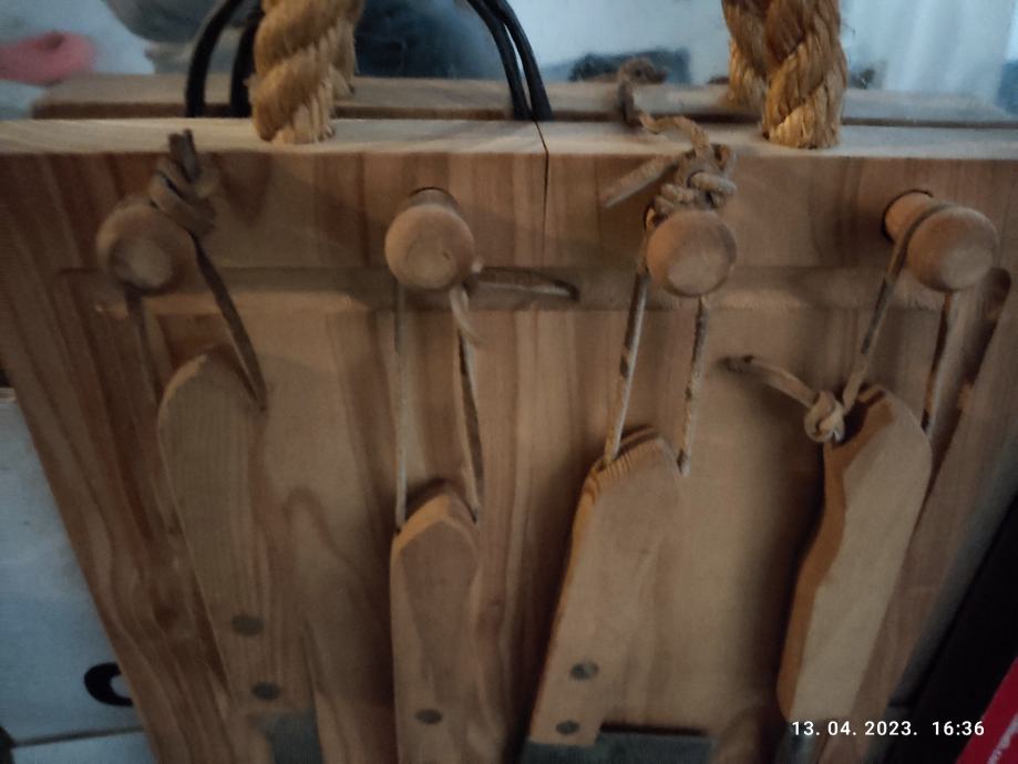 Stari set na drvenoj dasci 35x24cm, koji možete objesiti na zid