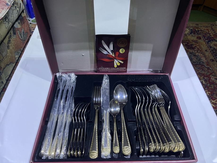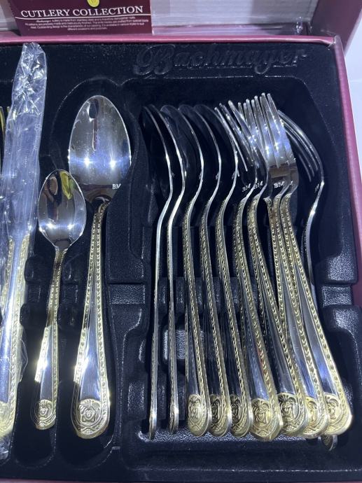 Prodajem nekorišten 24 dijelni pozlaćeni pribor za jelo Bachmayer professional dobiven na poklon iz Njemačke.