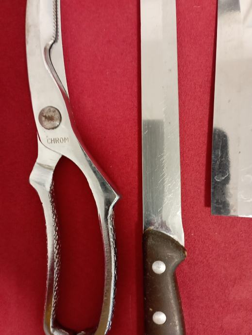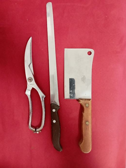 Nož za pršut,satara,te škare za perad,sve zajedno 15 e, pogledajte i ostale moje oglase, šaljem poštom, tekući